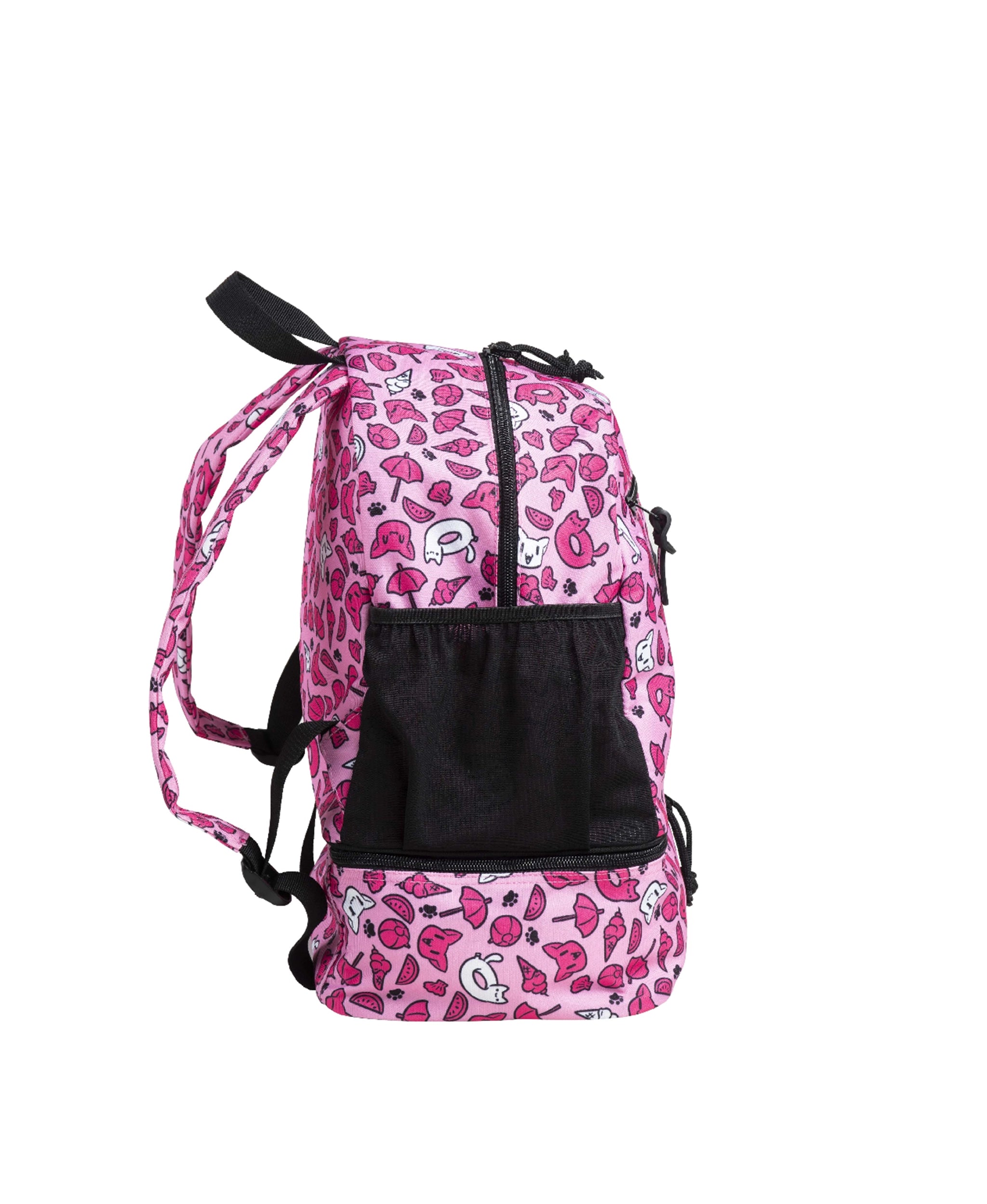 O seu pequeno nadador vai ficar ansioso por ir à piscina com a nossa Mochila Friends Team. Concebida para facilitar o transporte do equipamento de natação dos mais novos, esta mochila leve apresenta as adoráveis carinhas de gatinho exclusivas das nossas criações, pensadas para crianças dos 1 aos 9 anos. Sabemos que tudo precisa do seu lugar, por isso adicionámos um compartimento inferior separado para guardar os sapatos e um bolso exterior para a garrafa de água. Rumo à piscina!