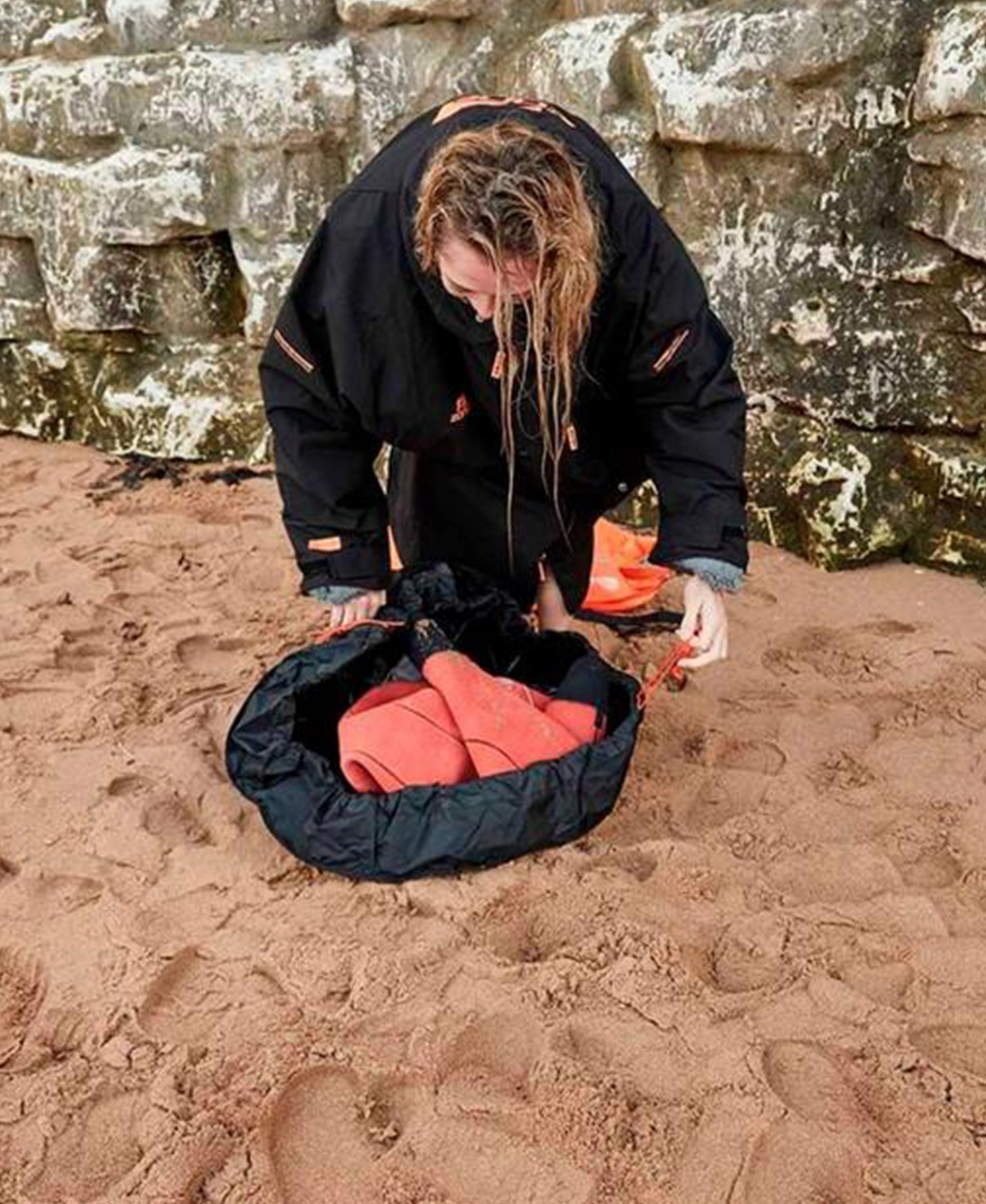 O tapete Zone3 Wetsuit é resistente e prático, podendo ser convertido num saco para guardar equipamentos molhados. A sua construção robusta permite utilizá-lo em qualquer superfície — seja na praia, na relva ou num parque de estacionamento — mantendo os pés limpos e protegidos.