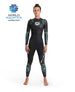 Este fato de neoprene para mulher está aprovado para competições FINA, ITU, Ironman e USAT.