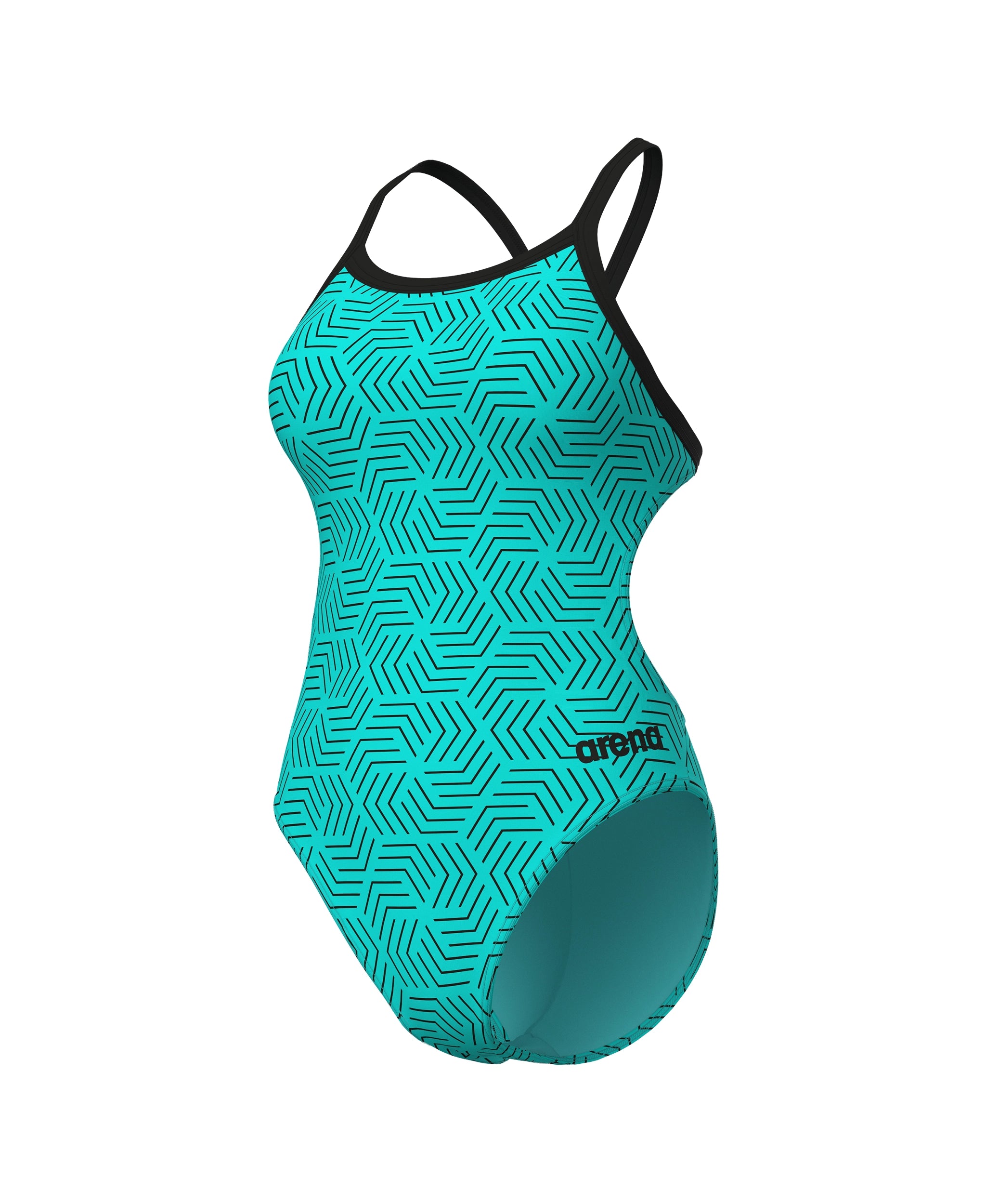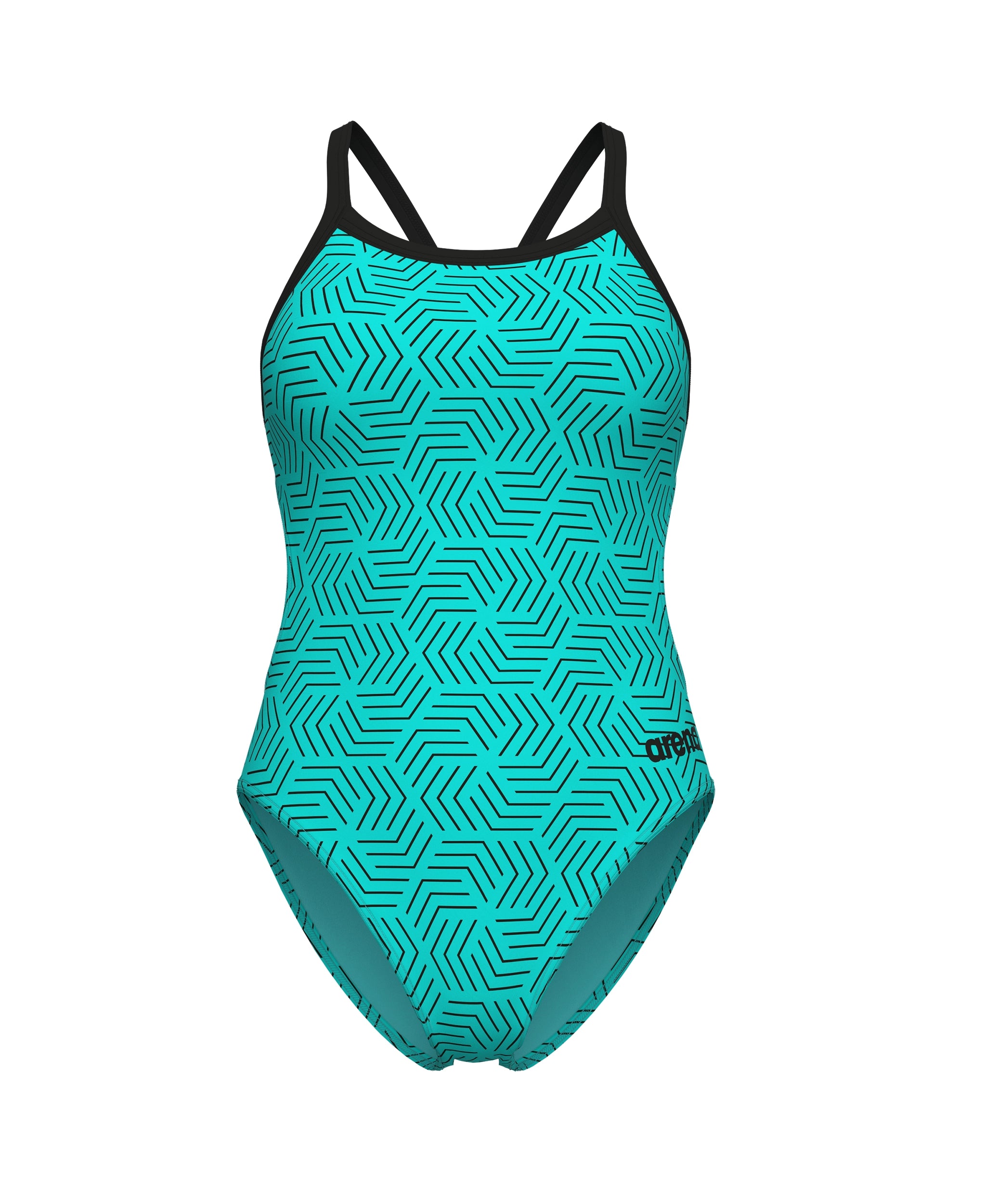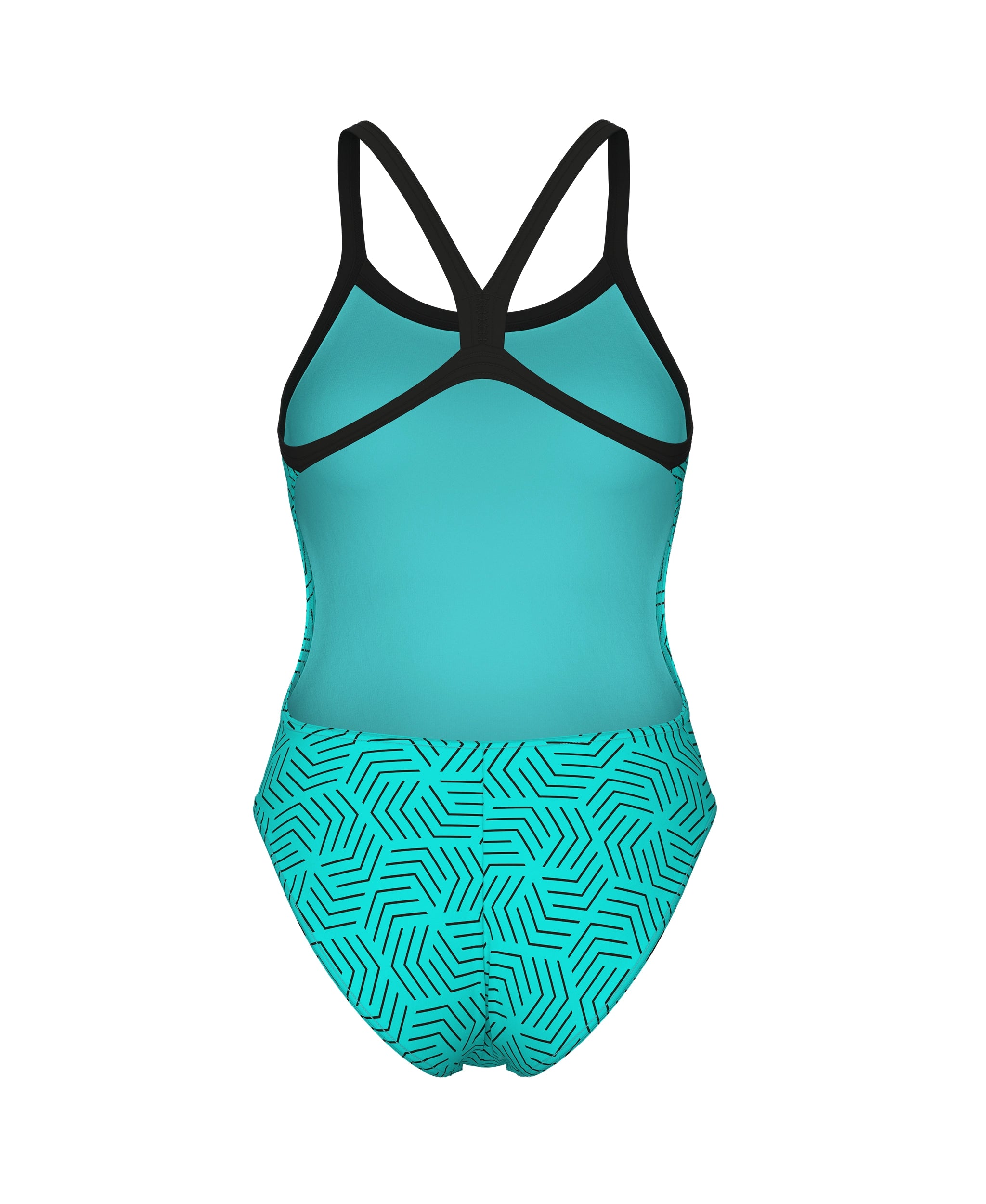 O motivo geométrico escuro, inspirado em padrões de labirinto, contrasta de forma nítida com o fundo turquesa do nosso fato de banho Water Maze para mulher. Possui alças finas e um recorte amplo que permite maior liberdade de movimentos na parte superior do corpo. Fabricado com o nosso tecido mais durável, este fato de banho de treino de peça única ajusta-se ao corpo e mantém a sua forma sessão após sessão.