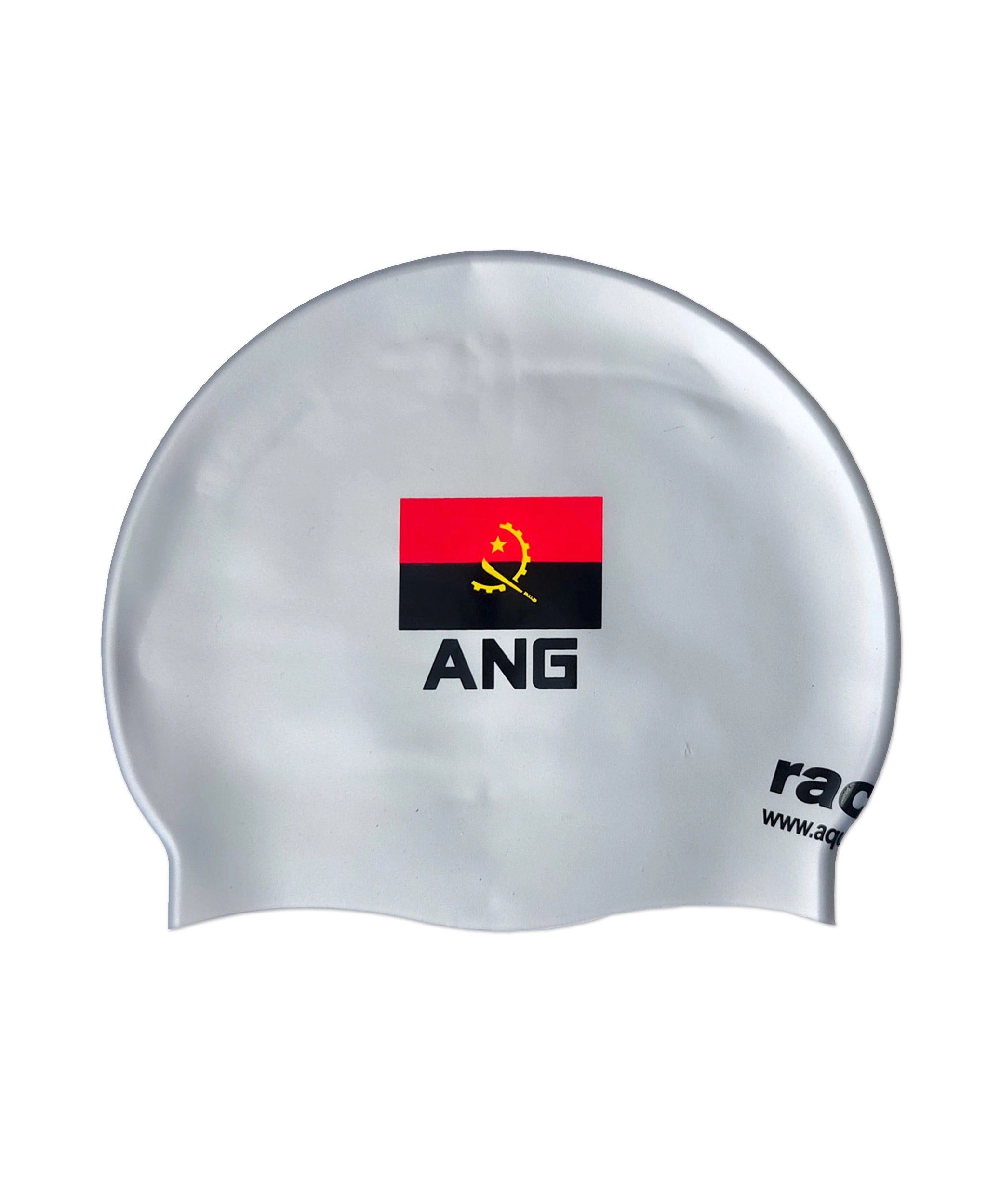 A touca de natação com a bandeira de Angola e código do pais como definido pelo Comité Olímpico Internacional